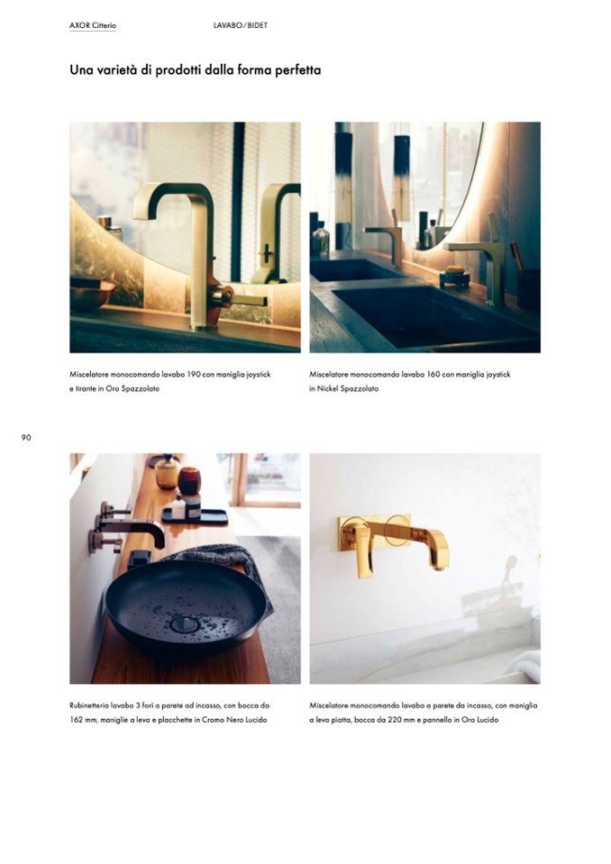 a leva piatta, bocca da 220 mm e pannello in Oro Lucido