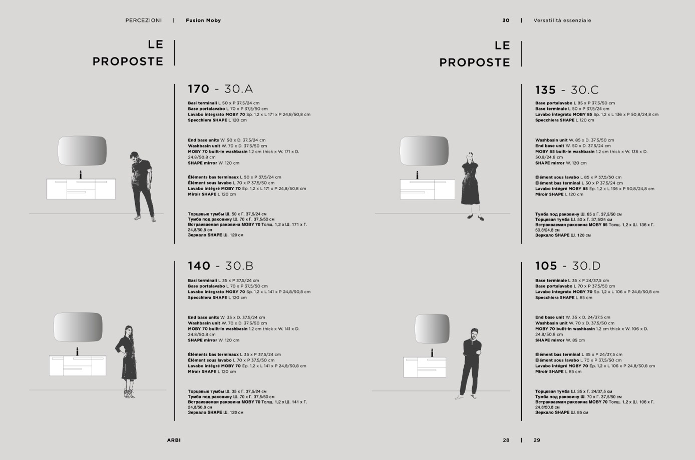 MOBY 70 built-in washbasin 1.2 cm thick x W. 171 x D.