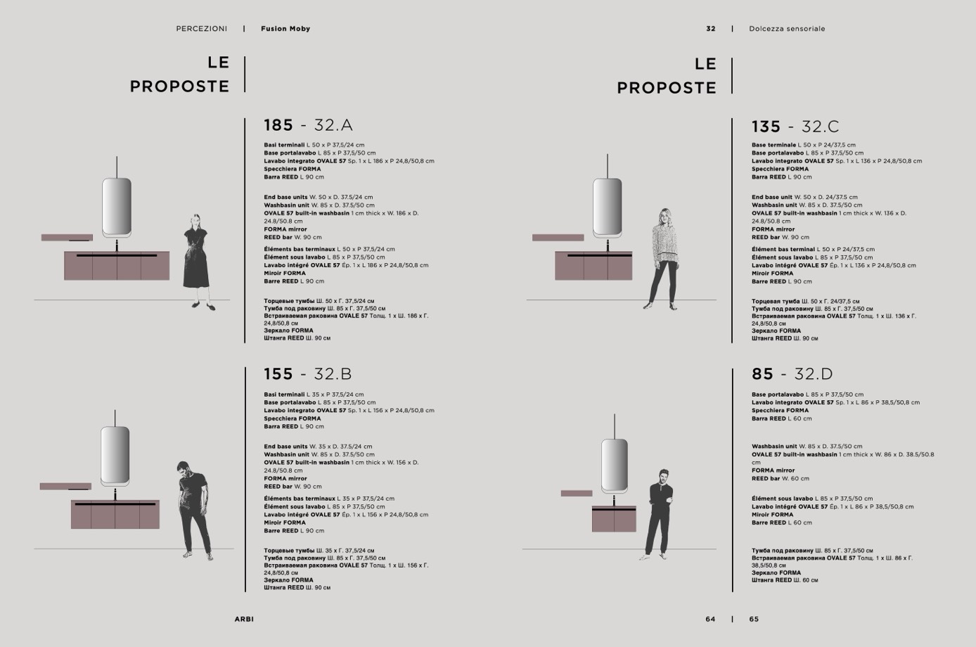 Lavabo integrato OVALE 57 Sp. 1 x L 186 x P 24,8/50,8 cm