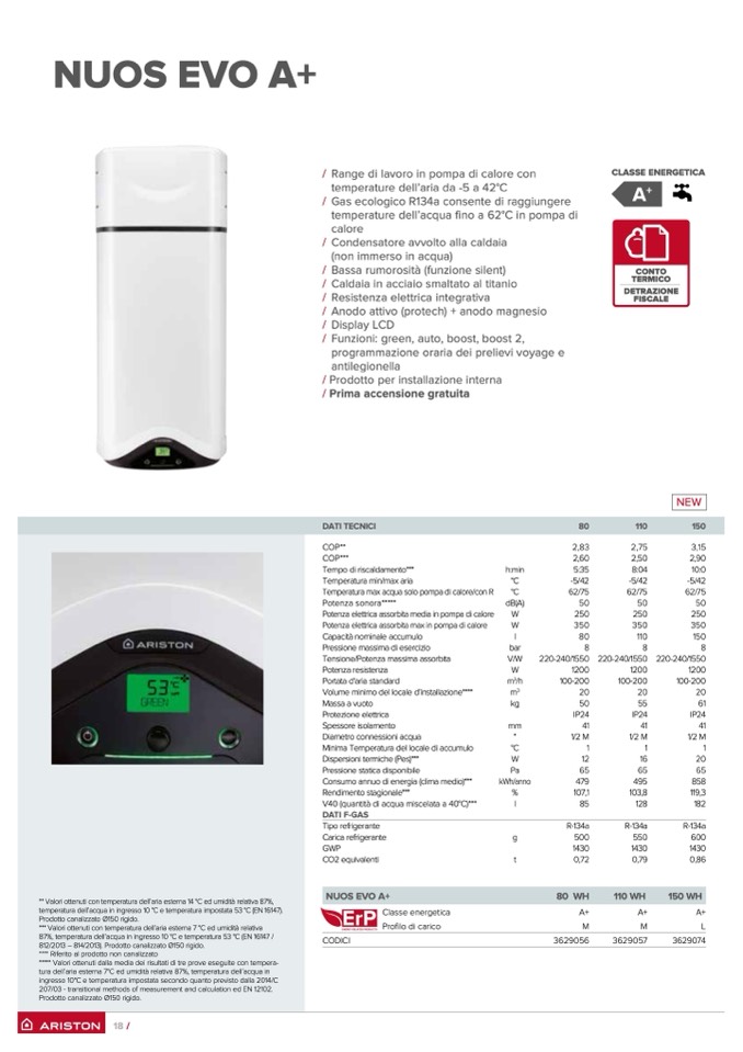 temperatura dell’acqua in ingresso 10 °C e temperatura impostata 53 °C (EN 16147).