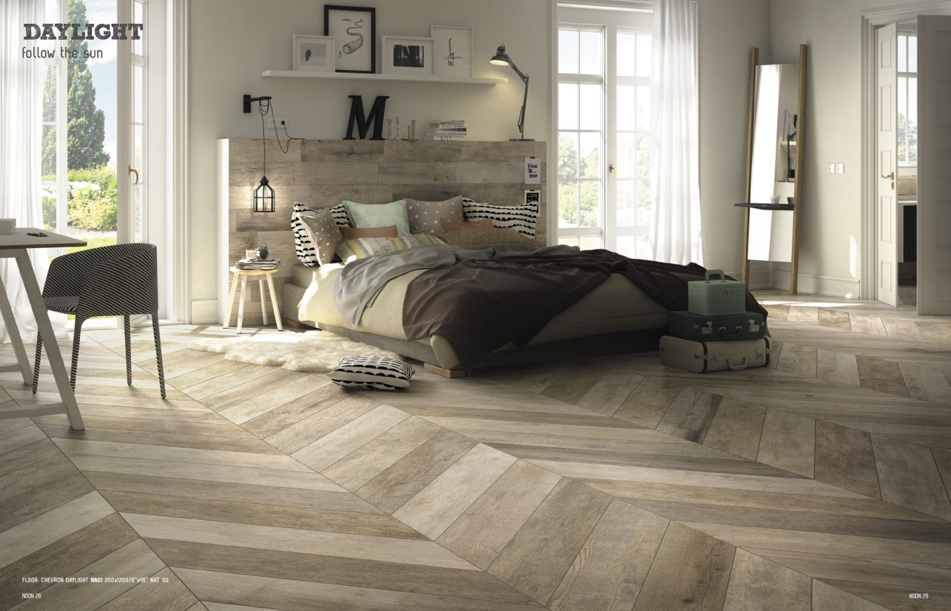 FLOOR: CHEVRON DAYLIGHT NN01 200x1200/8”x48” NAT SQ