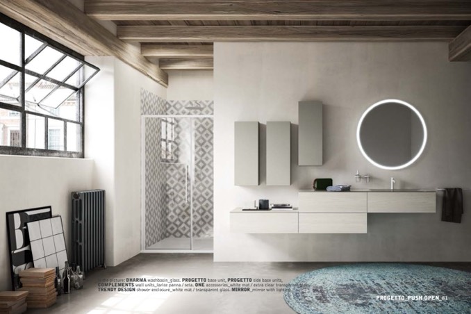 _in the picture: DHARMA washbasin_glass. PROGETTO base unit, PROGETTO side base units,