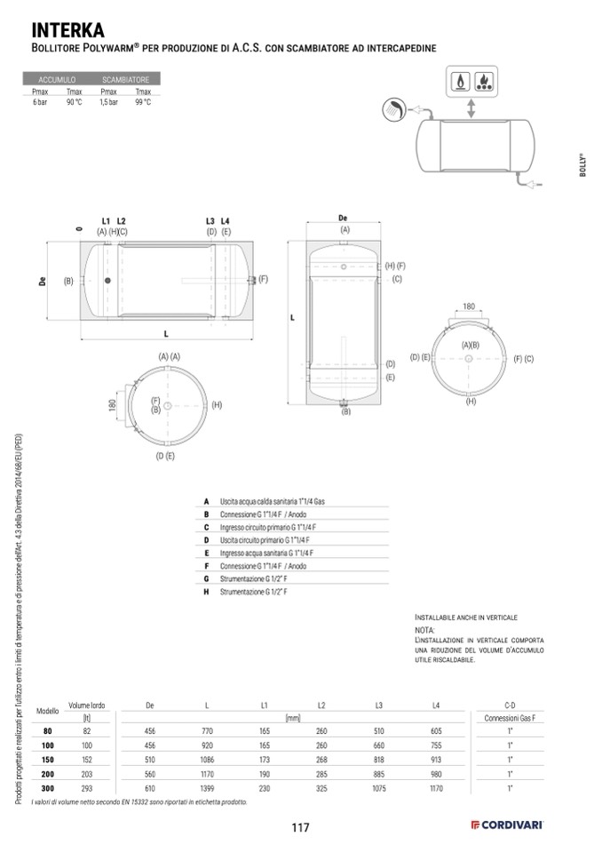 E Ingresso acqua sanitaria G 1”1/4 F