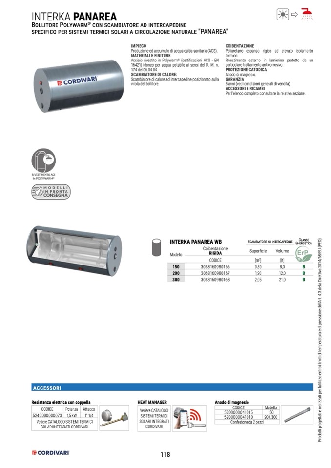 Produzione ed accumulo di acqua calda sanitaria (ACS).