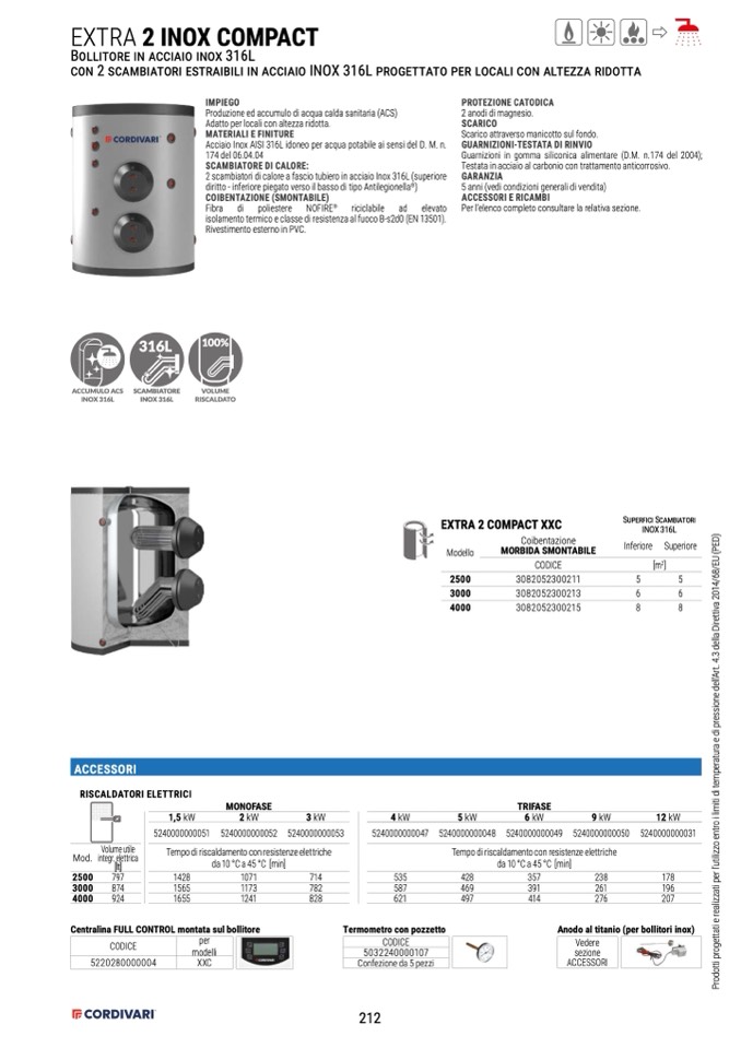 Acciaio Inox AISI 316L idoneo per acqua potabile ai sensi del D. M. n.