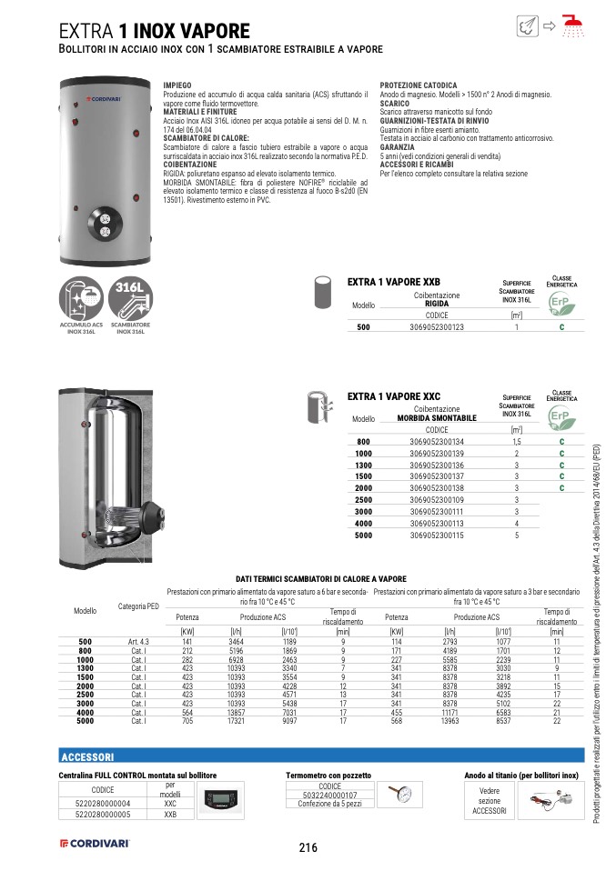 DATI TERMICI SCAMBIATORI DI CALORE A VAPORE