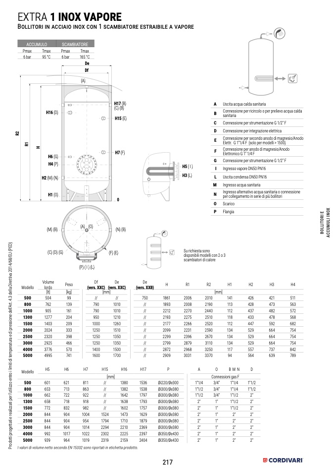 Bollitori in acciaio inox con 1 scambiatore estraibile a vapore
