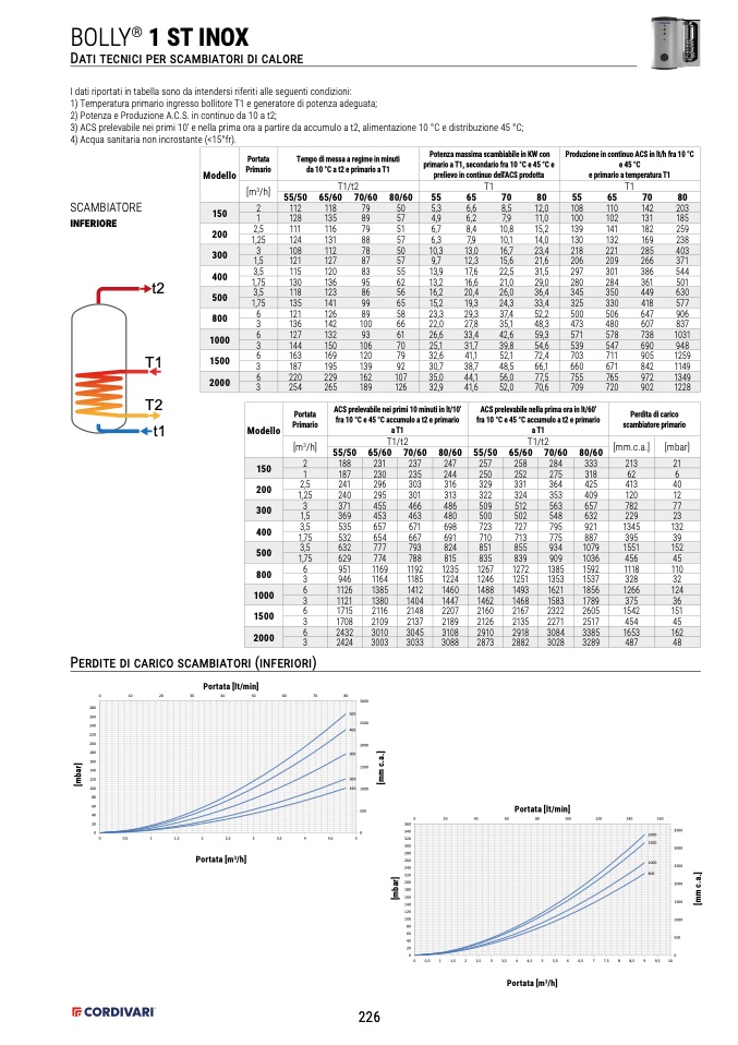 3) ACS prelevabile nei primi 10’ e nella prima ora a partire da accumulo a t2, alimentazione 10 °C e distribuzione 45 °C;