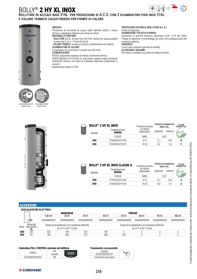 - BOLLITORE A.C.S.: Acciaio Inox AISI 316L idoneo per acqua potabile