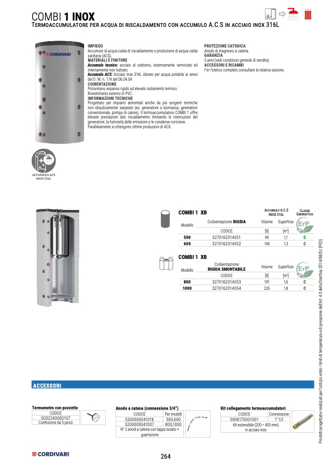 convenzionale, pompa di calore). Il termoaccumulatore COMBI 1 offre