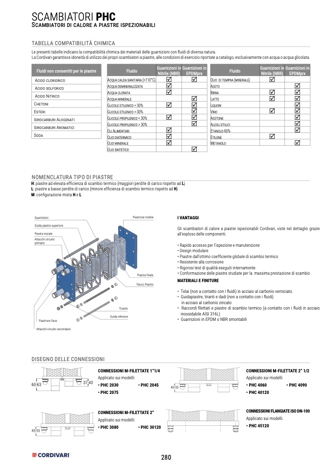 La Cordivari garantisce idoneità di utilizzo dei propri scambiatori a piastre, alle condizioni di esercizio riportate a catalogo, esclusivamente con acqua o acqua glicolata.