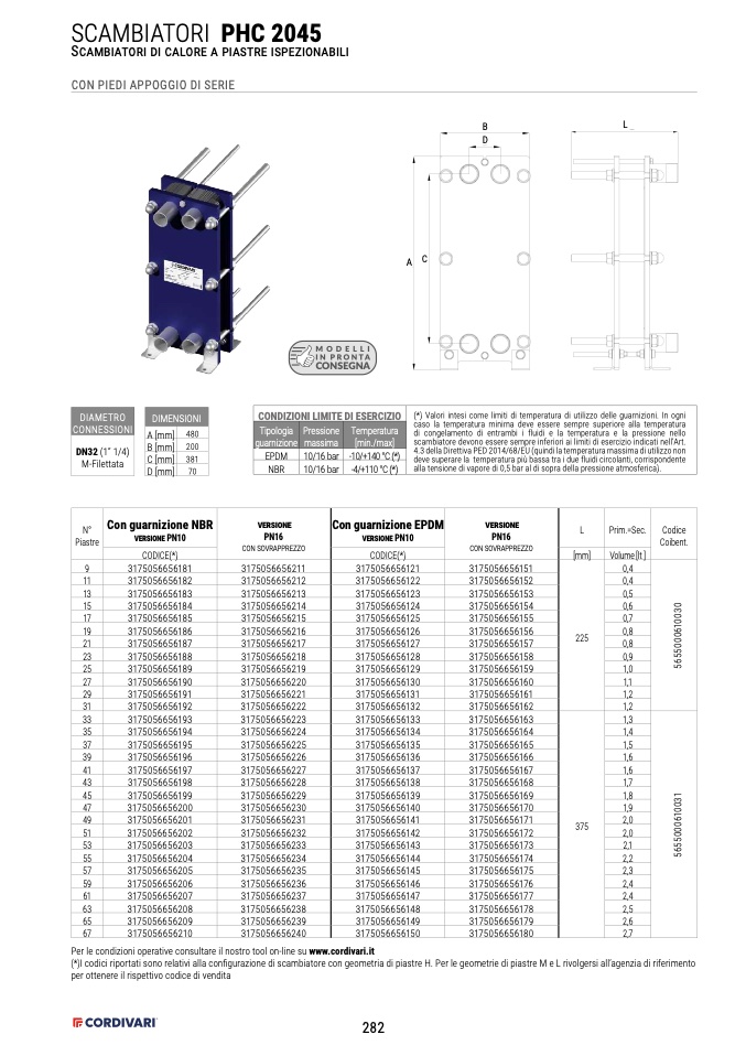 (*)I codici riportati sono relativi alla configurazione di scambiatore con geometria di piastre H. Per le geometrie di piastre M e L rivolgersi all’agenzia di riferimento