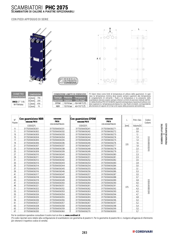 (*)I codici riportati sono relativi alla configurazione di scambiatore con geometria di piastre H. Per le geometrie di piastre M e L rivolgersi all’agenzia di riferimento