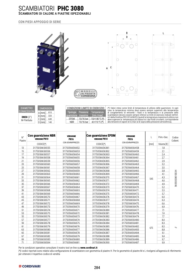 (*)I codici riportati sono relativi alla configurazione di scambiatore con geometria di piastre H. Per le geometrie di piastre M e L rivolgersi all’agenzia di riferimento