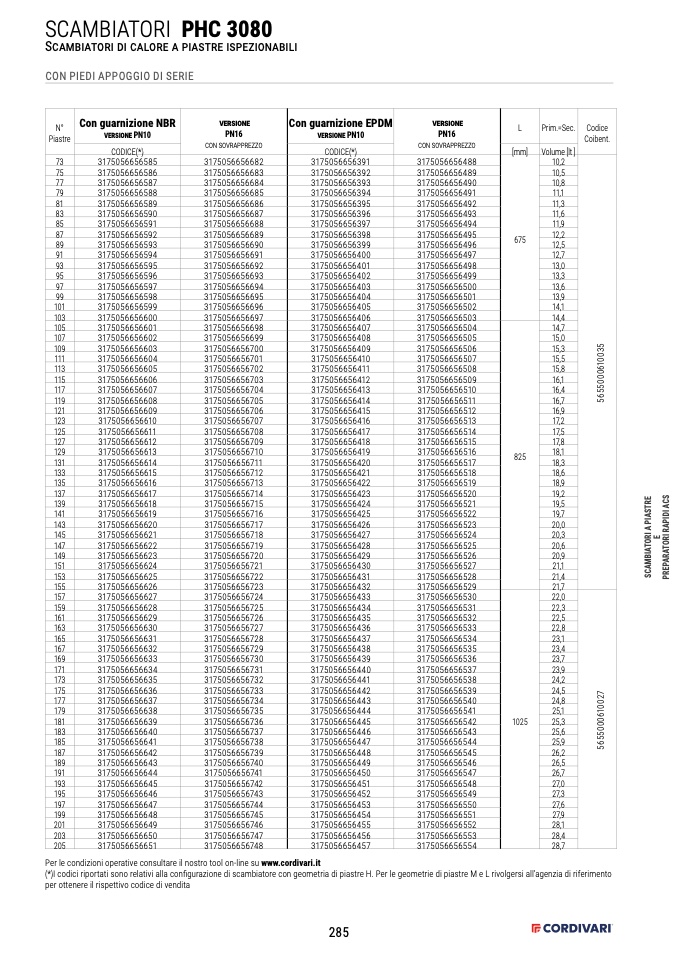 (*)I codici riportati sono relativi alla configurazione di scambiatore con geometria di piastre H. Per le geometrie di piastre M e L rivolgersi all’agenzia di riferimento