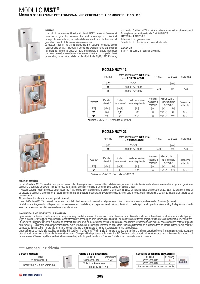 ottimali per il generatore e riducendo il rischio di condensa. Ciò è possibile impostando sulla centralina BIO Cordivari dedicata (optional) una temperatura di attivazione della pompa del