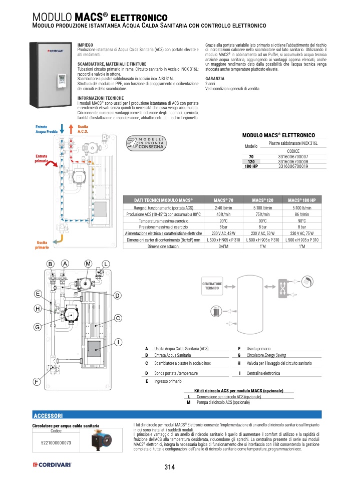completa di tutte le configurazioni dell’anello di ricircolo sanitario come temperature, programmazioni ecc.