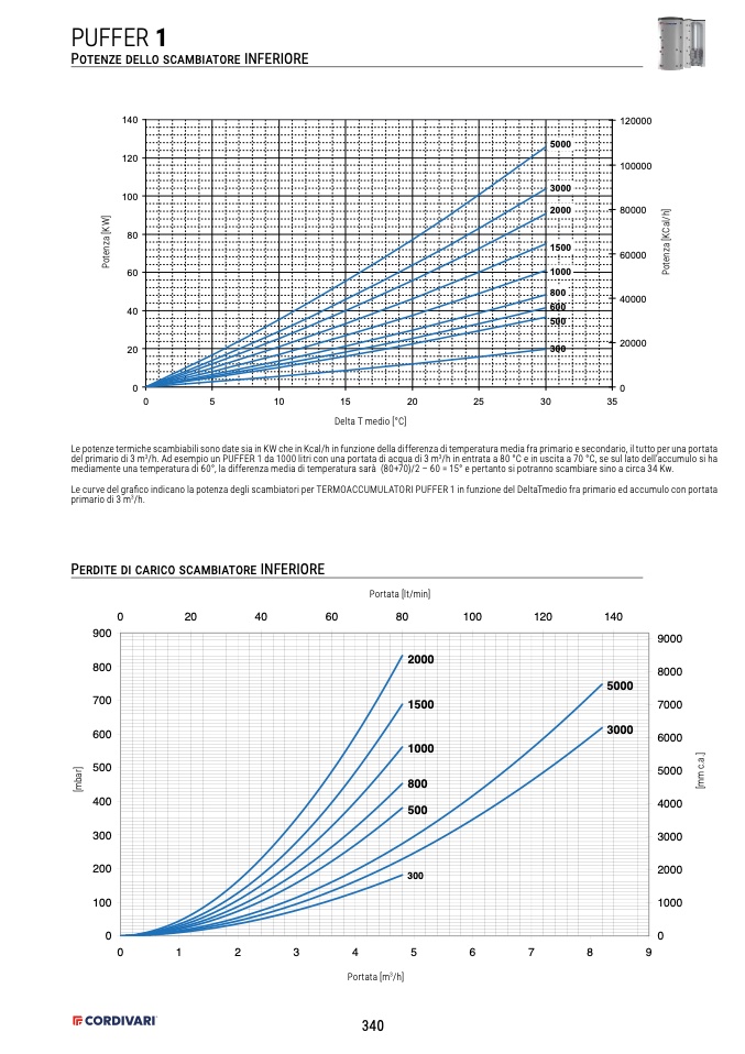 /h. Ad esempio un PUFFER 1 da 1000 litri con una portata di acqua di 3 m