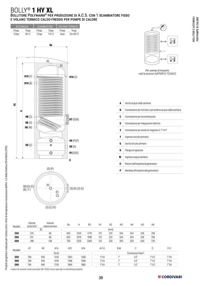 B Connessione per ricircolo o per prelievo acqua calda sanitaria