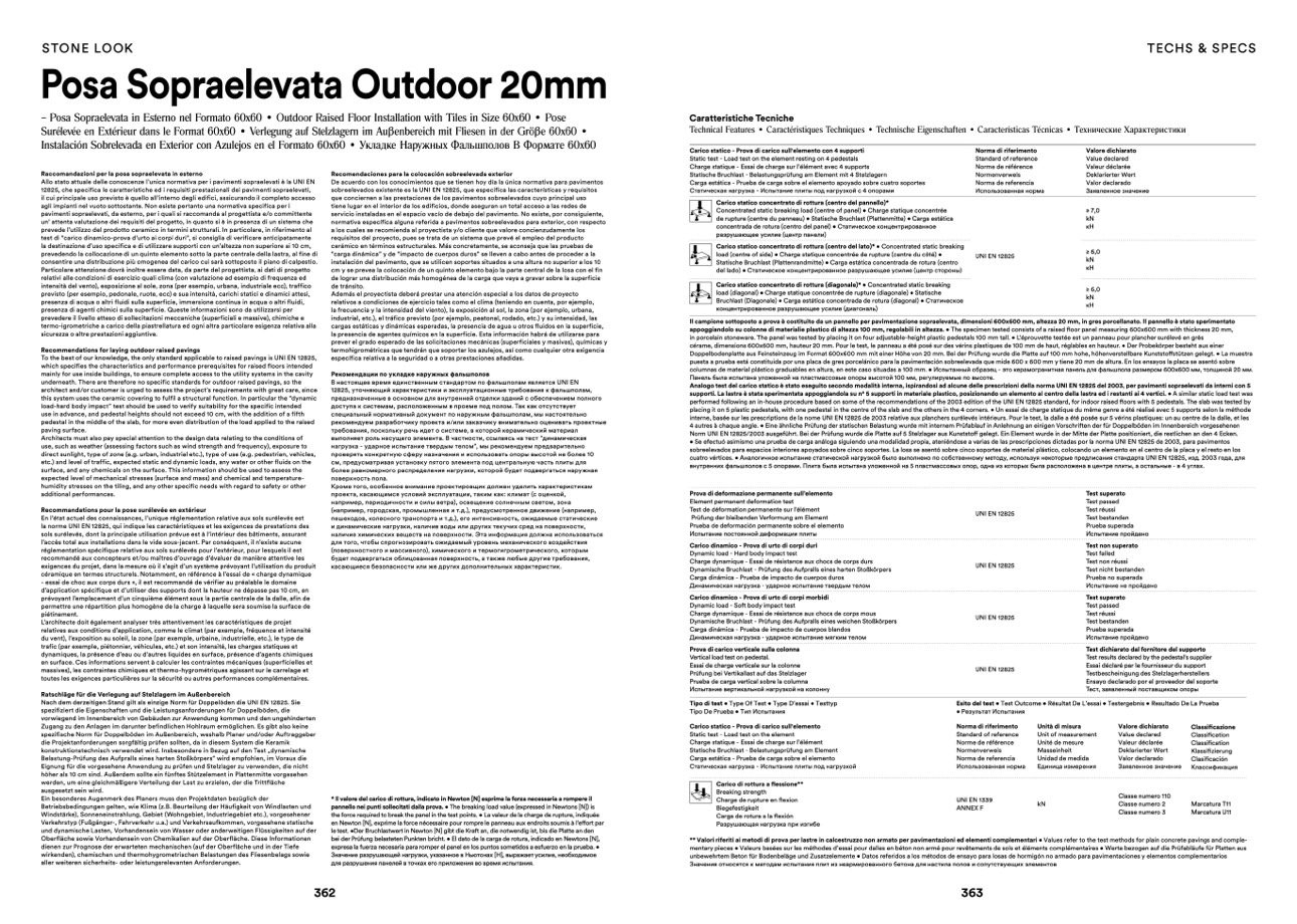 ** Valori riferiti ai metodi di prova per lastre in calcestruzzo non armato per pavimentazioni ed elementi complementari • Values refer to the test methods for plain concrete pavings and comple-