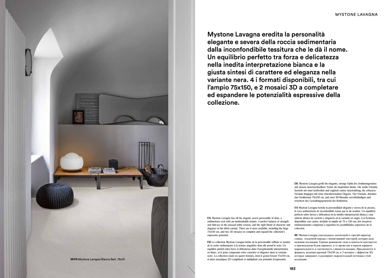 FR La collection Mystone Lavagna hérite de la personnalité raffinée et austère