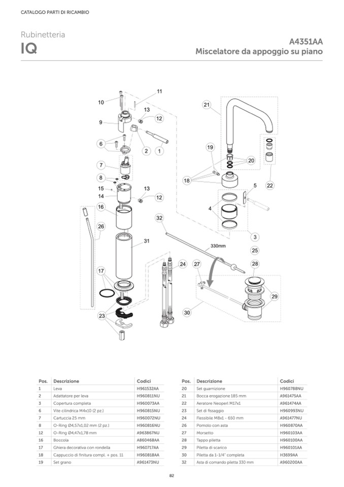 Asta di comando piletta 330 mm