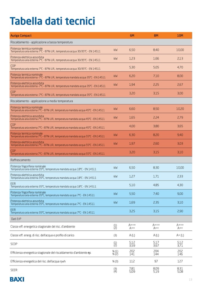 Temperatura aria esterna 7°C – 87% U.R., temperatura mandata acqua 55°C - EN 14511