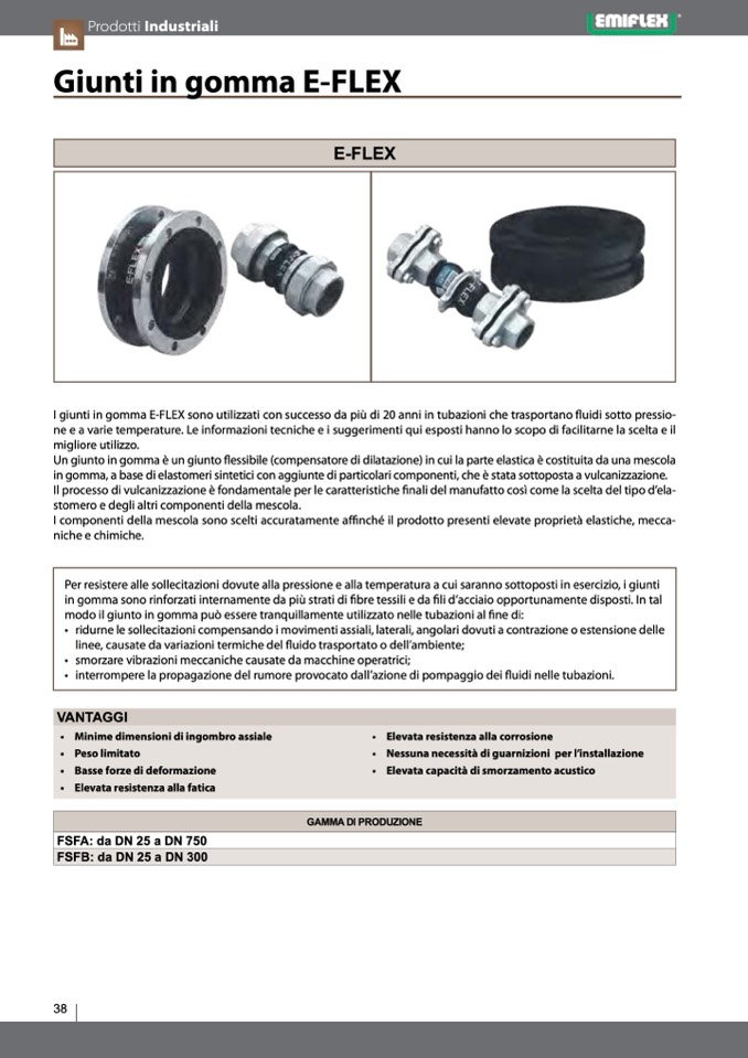 I giunti in gomma E-FLEX sono utilizzati con successo da più di 20 anni in tubazioni che trasportano fluidi sotto pressio-