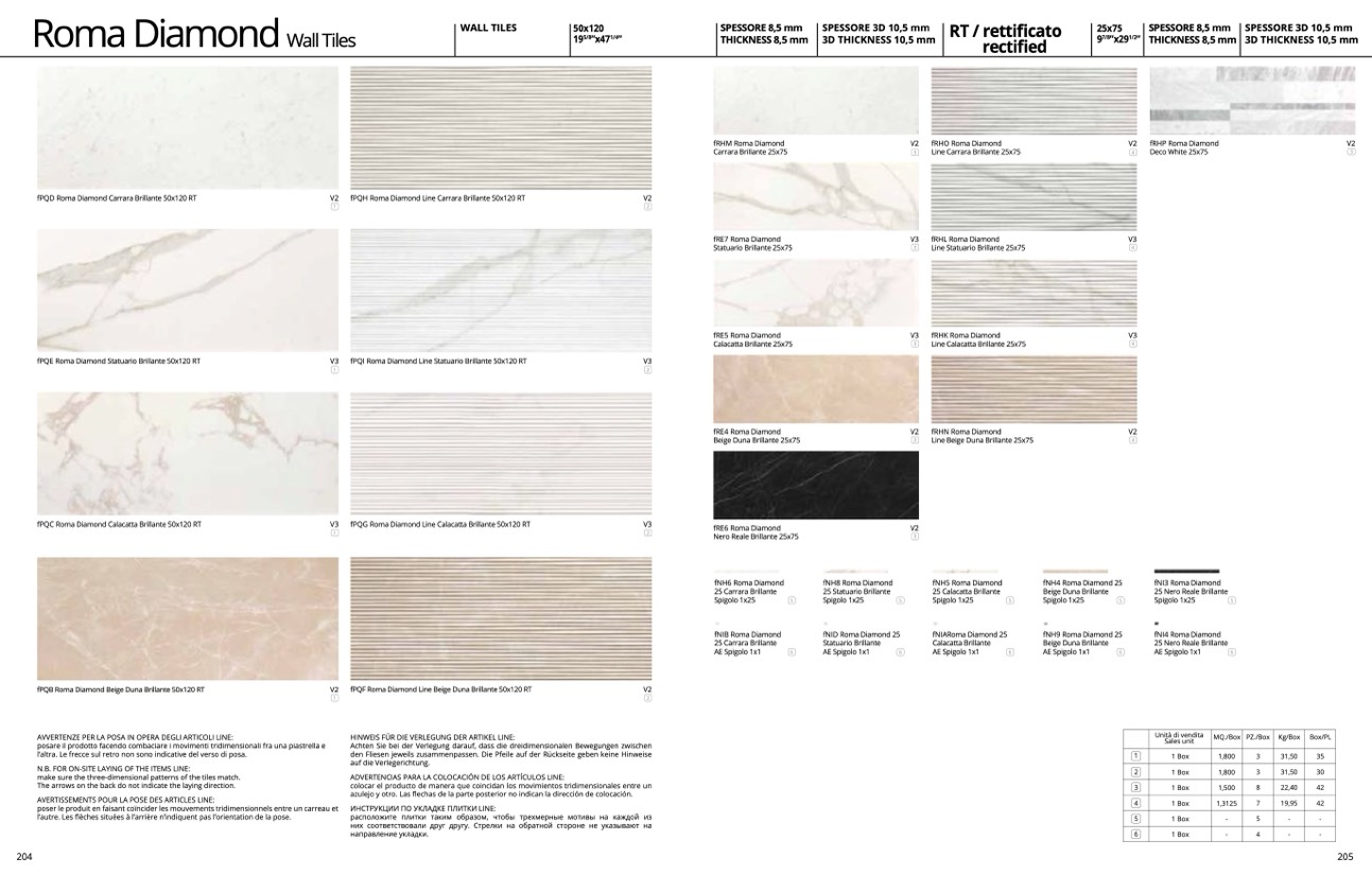 V2 fPQH Roma Diamond Line Carrara Brillante 50x120 RT