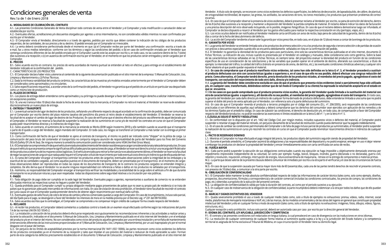 C.2. Dada la intrínseca variabilidad del producto cerámico, las características de las muestras y/o modelos enviados anteriormente por el Vendedor al Comprador deben