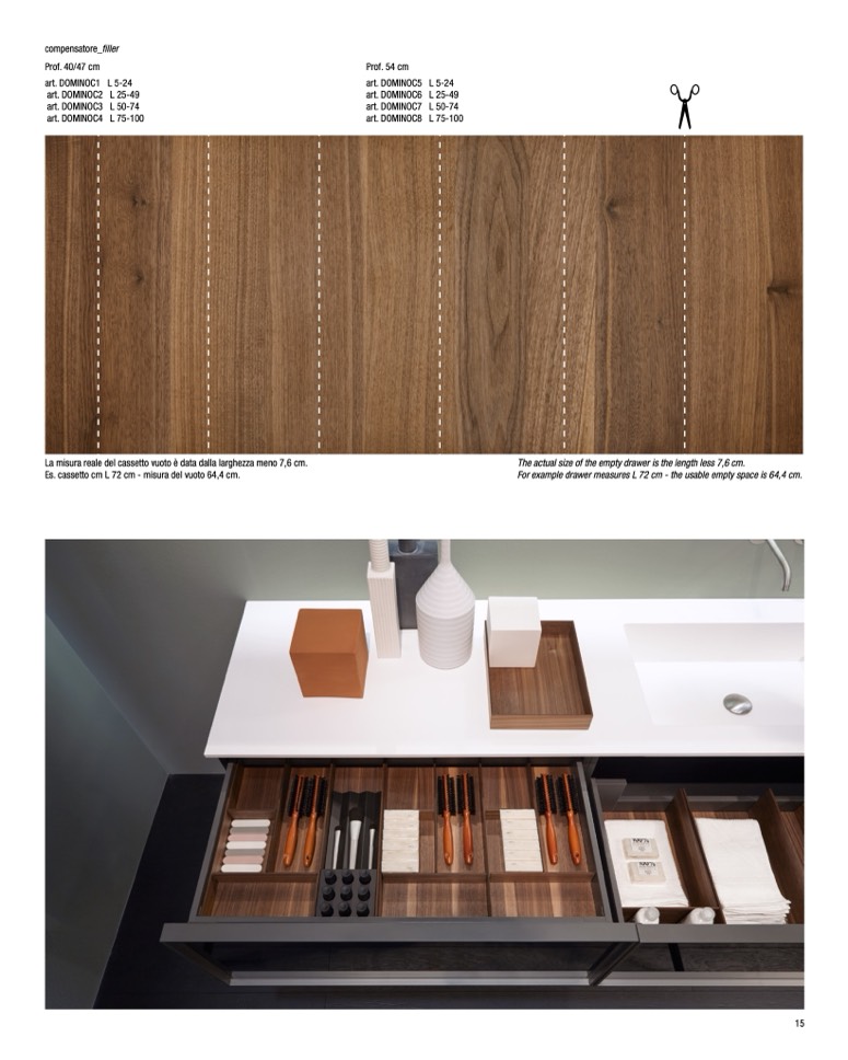 For example drawer measures L 72 cm - the usable empty space is 64,4 cm.
