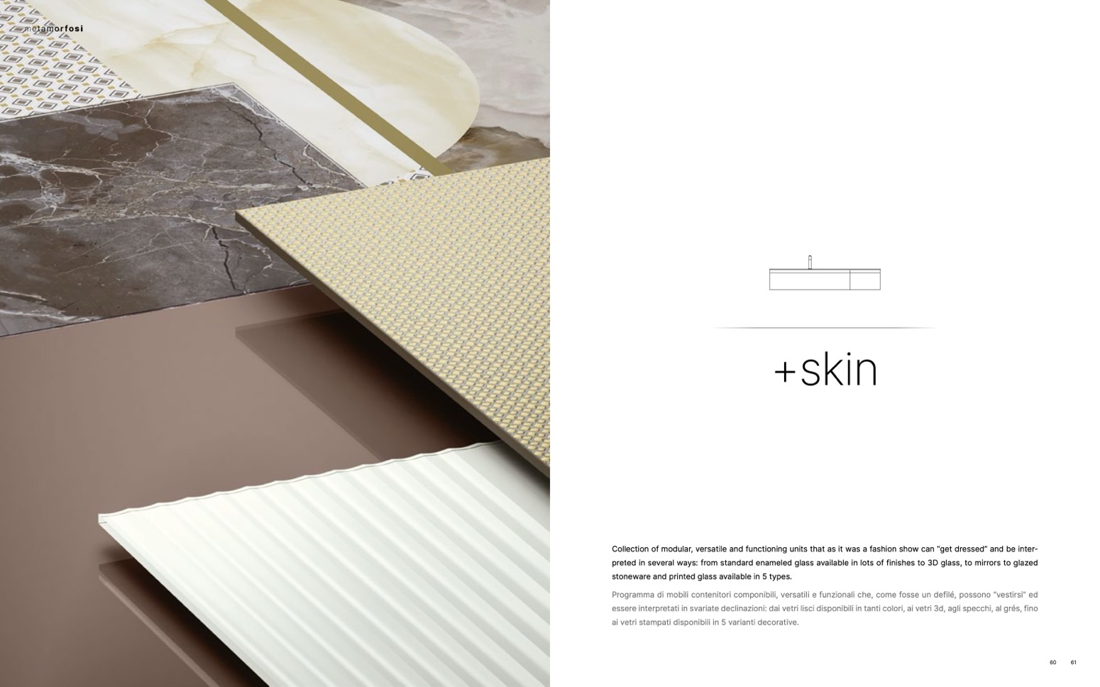 preted in several ways: from standard enameled glass available in lots of finishes to 3D glass, to mirrors to glazed