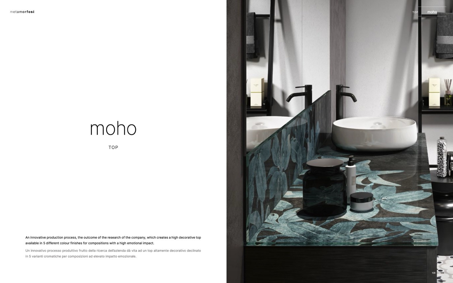 Un innovativo processo produttivo frutto della ricerca dell’azienda dà vita ad un top altamente decorativo declinato