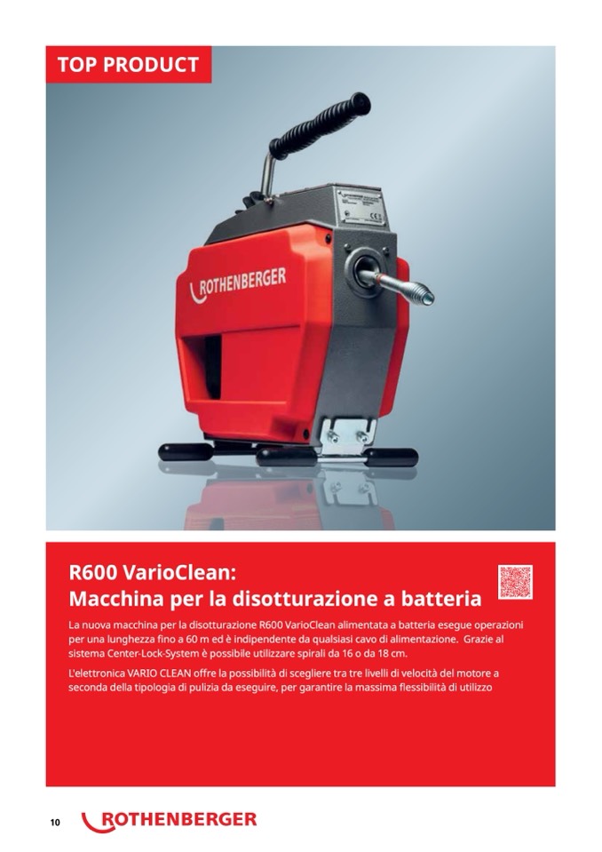 La nuova macchina per la disotturazione R600 VarioClean alimentata a batteria esegue operazioni