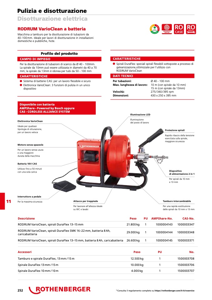 RODRUM VarioClean, spirali DuraFlex 13–15 mm, batteria 8 Ah, caricabatteria