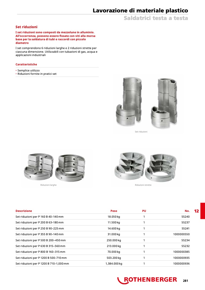 I set riduzioni sono composti da mezzelune in alluminio.
