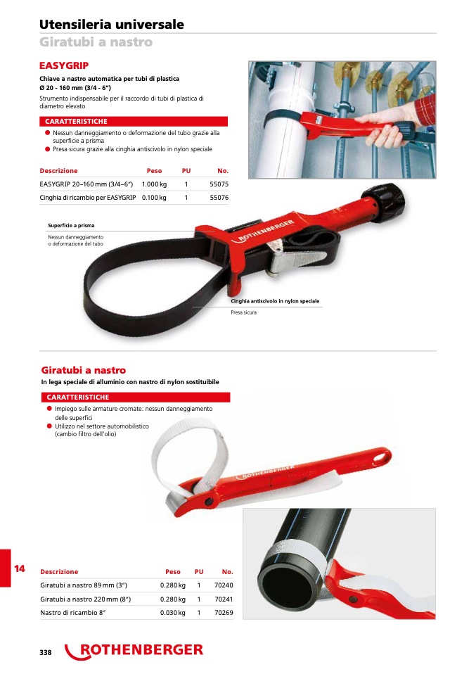 Chiave a nastro automatica per tubi di plastica