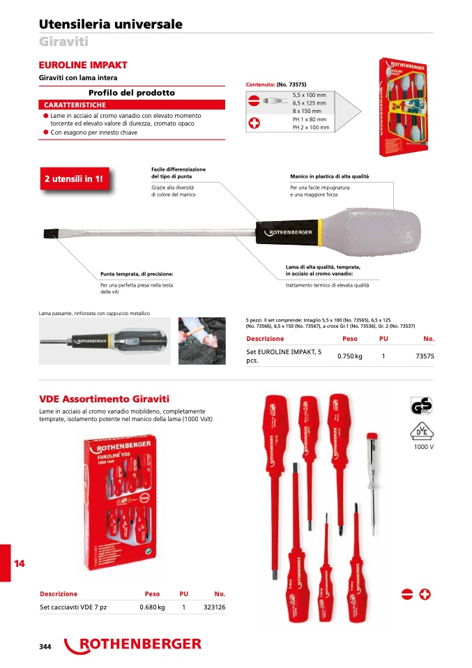 temprate, isolamento potente nel manico della lama (1000 Volt)