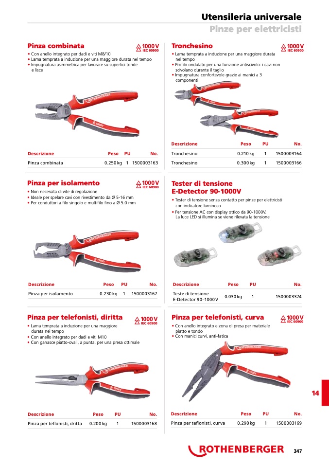 • Tester di tensione senza contatto per pinze per elettricisti
