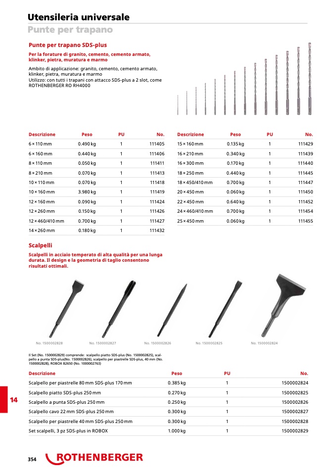 Il Set (No. 1500002829) comprende: scalpello piatto SDS-plus (No. 1500002825), scal-