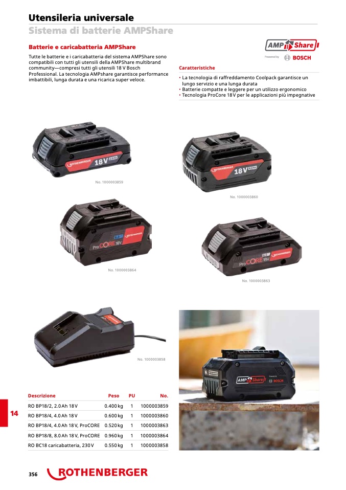 Tutte le batterie e i caricabatteria del sistema AMPShare sono