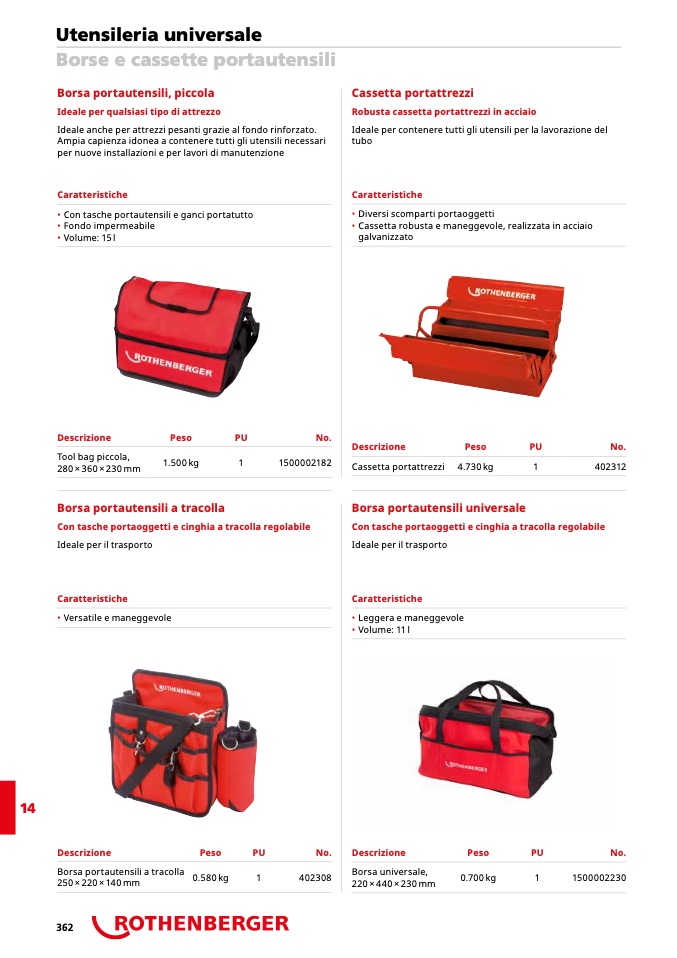 Ampia capienza idonea a contenere tutti gli utensili necessari