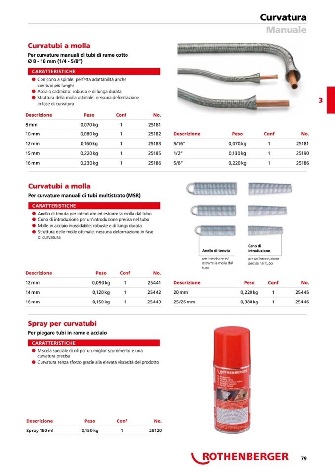 Per curvature manuali di tubi di rame cotto