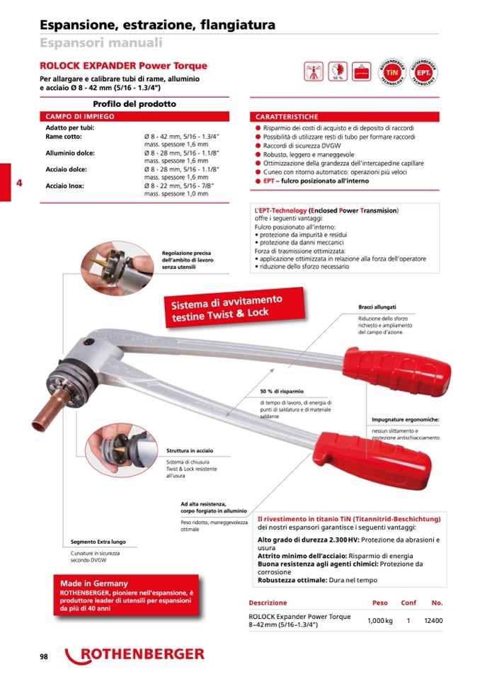 e acciaio Ø 8 - 42 mm (5/16 - 1.3/4”)