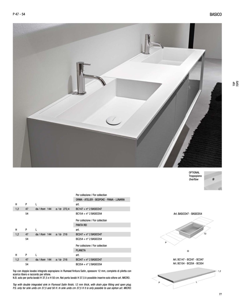 P.S. only for sink units cm 37,5 and 50 H. In sink units cm 37,5 H it is only possible to use siphon art. MICRO.
