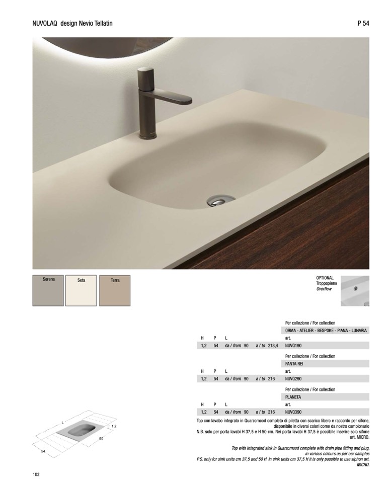 N.B. solo per porta lavabi H 37,5 e H 50 cm. Nei porta lavabi H 37,5 è possibile inserire solo sifone