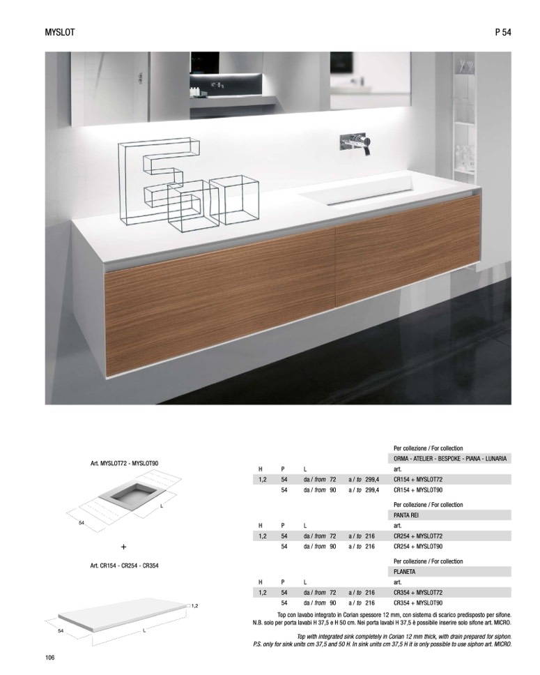 N.B. solo per porta lavabi H 37,5 e H 50 cm. Nei porta lavabi H 37,5 è possibile inserire solo sifone art. MICRO.