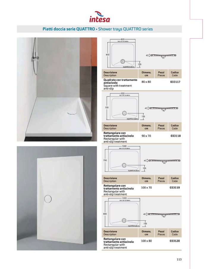 PiattidocciaserieQUATTRO•Shower trays QUATTROseries