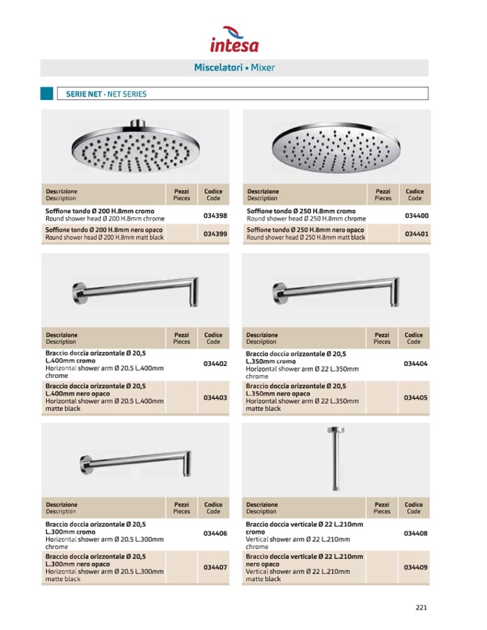 doccia verticale 0 22 L.210mm