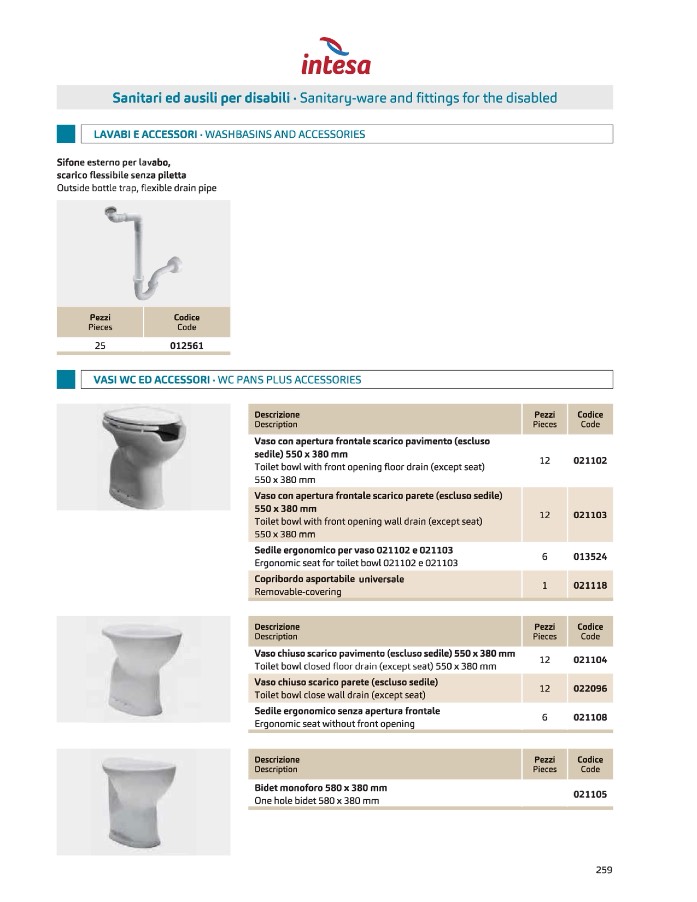 Toilet bowl closed floor drain (except seat) 550 x 380 mm